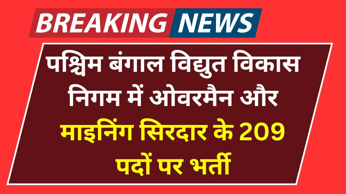 WBPDCL Recruitment 2025: पश्चिम बंगाल विद्युत विकास निगम में ओवरमैन और माइनिंग सिरदार के 209 पदों पर भर्ती